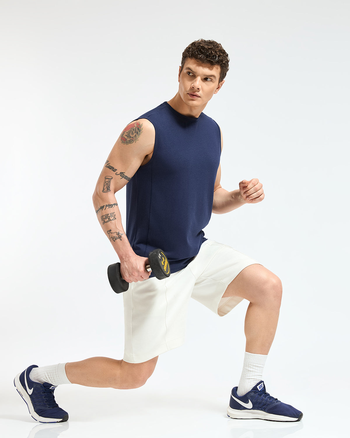 Style Tip: Pair it with performance shorts or joggers to highlight the sleeveless athletic cut and create a sharp, training-ready look.