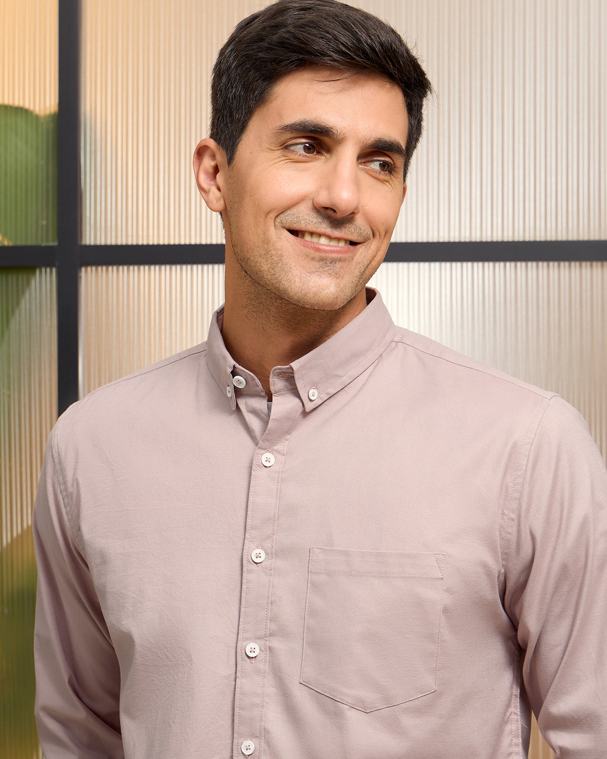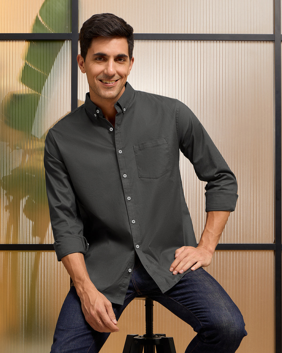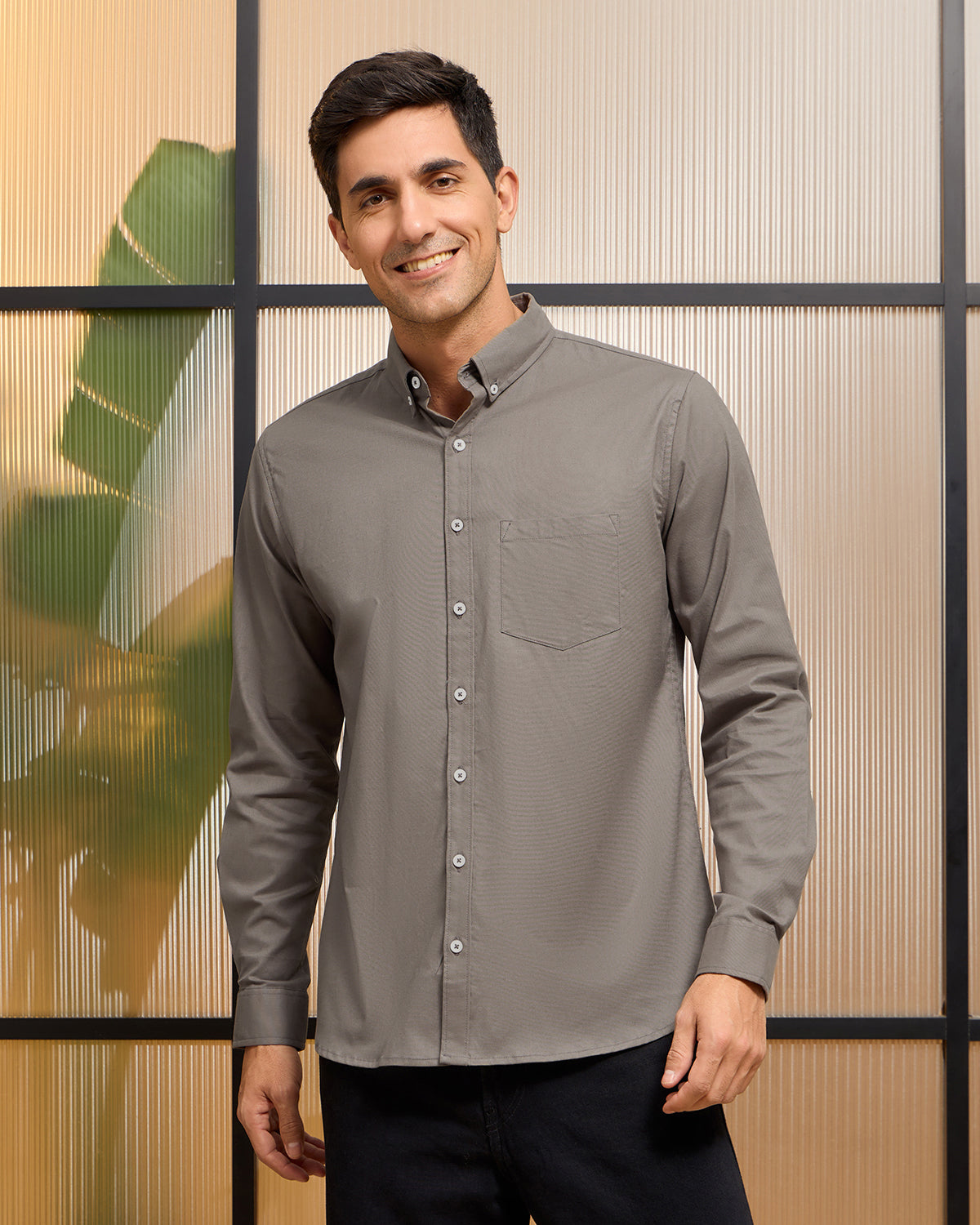 - Collar: Button-down collar, adding a smart, refined touch.