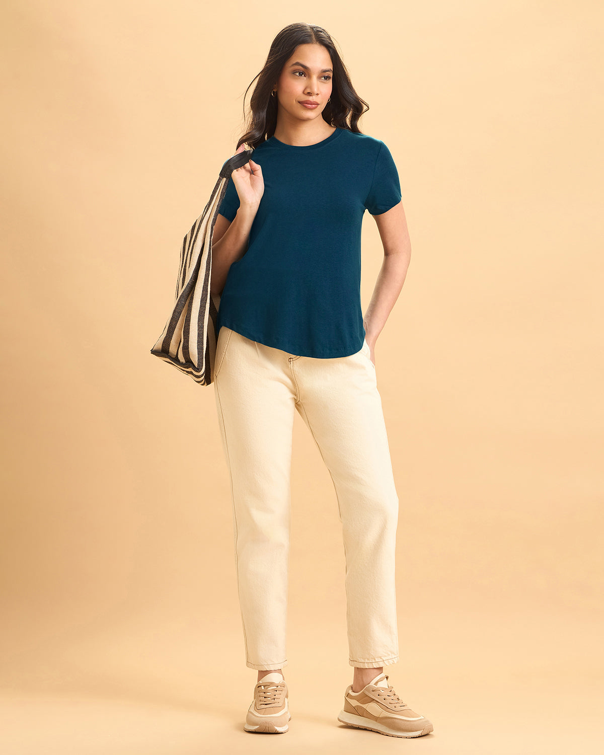 Style Tip: Pair it with jeans and sneakers for a laid-back chic look, or tuck it into a flowy midi skirt with sandals for effortless elegance. Layer with a blazer for a polished, versatile outfit.